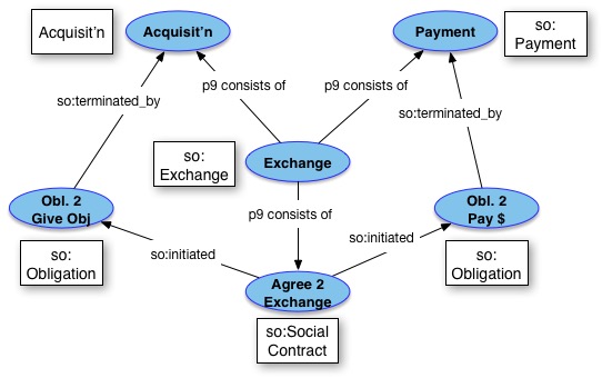 If, in your model, the necessary substance of the exchange is only a plan, then, in order to query, if an exchange has actually happened, we need to check fulfillment of obligations. Then, this was my suggestion, the final provision terminating the obligation is the historical fact that identifies the actual exchange. In that case, the primitive classes are the provisions and obligations, and the exchange is a logical derivative. Our methodology strictly requires to model primitives first.