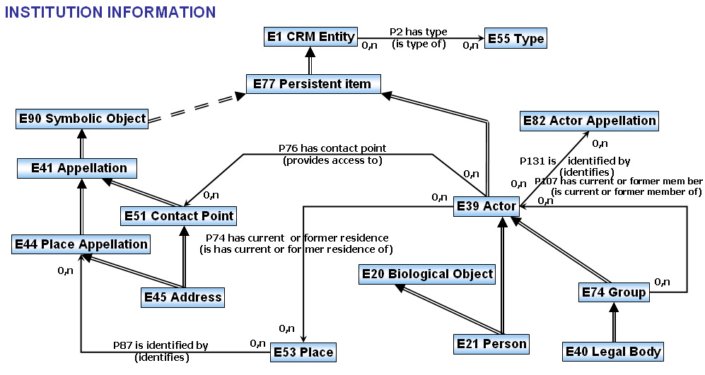| Person Nationality Information | E4 Period, E21 Person, E44 Place Appellation, E45 Address, E46 Section Definition, E47 Spatial Coordinates, E48 Place Name, E53 Place, E55 Type, E67 Birth, E74 Group | P2 has type, P7 took place at, P10 falls within, P87 is identified by, P98 brought into life, P107 has current or former member | Version 7.1.3 |