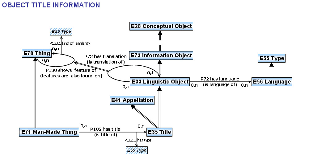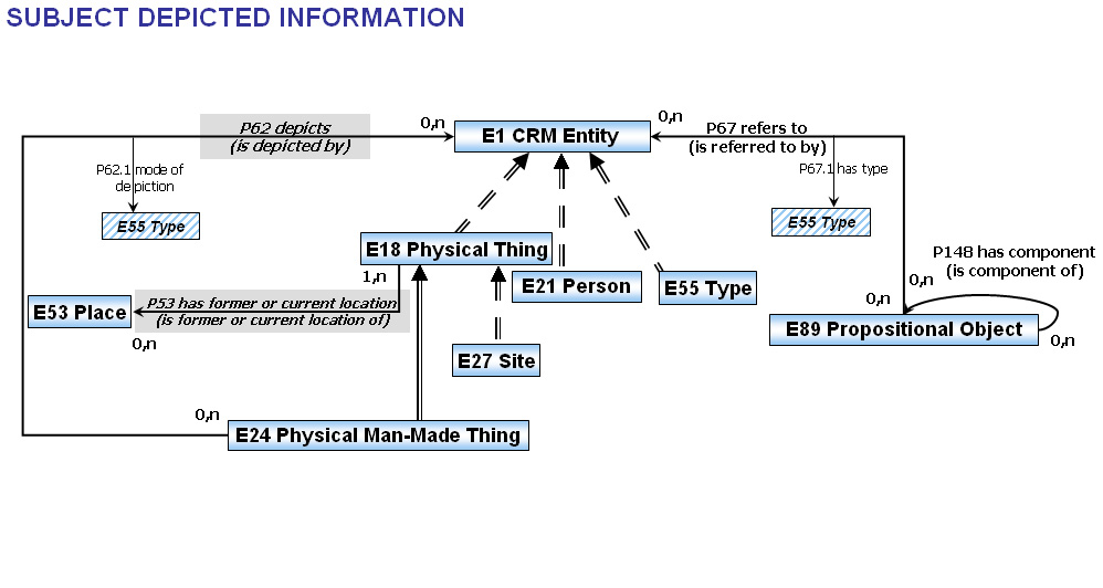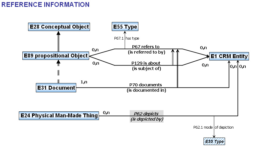 | Reference Information | E1 CRM Entity, E24 Physical Man-Made Thing, E28 Conceptual Object, E31 Document, E89 Propositional Object | P62 depicts, P67 refers to, P70 documents, P129 is about | Version 7.1.3 |